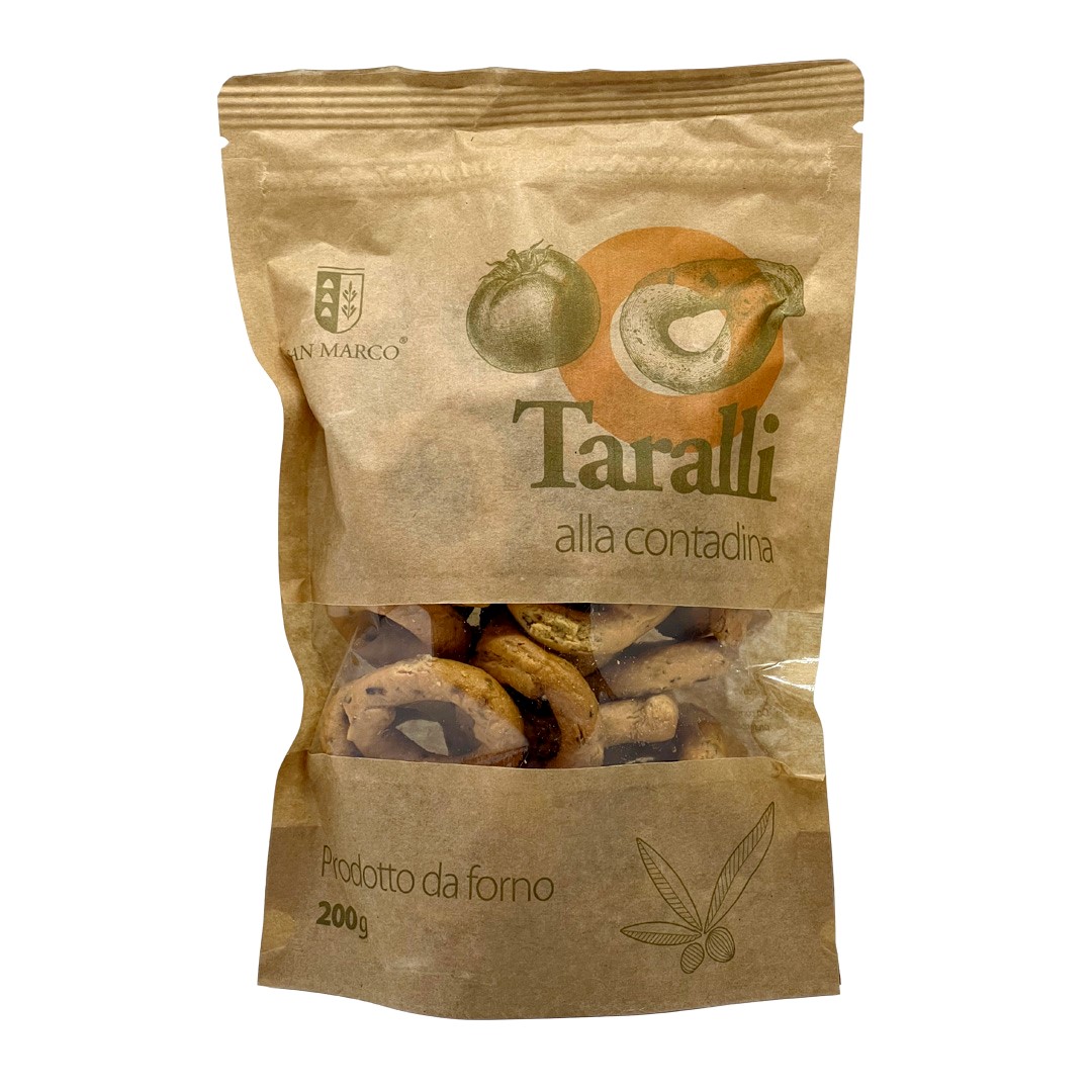 Scegli i taralli pugliesi alla contadina 200 g Oleificio San Marco e aggiungi alla tua tavola uno snack genuino, aromatico e ricco di tradizione.
